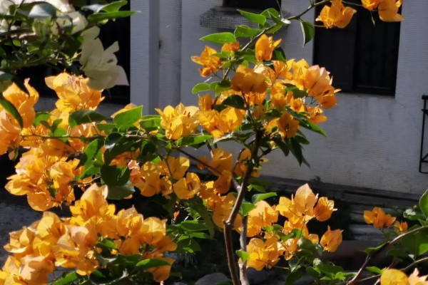 加州黄金三角梅是三角梅中的一个珍稀品种,花色会随着季节的变化而发生改变,有橙黄色、金黄色、淡黄色的区分,植株的株型较大,生长速度快,适合种植在庭院。