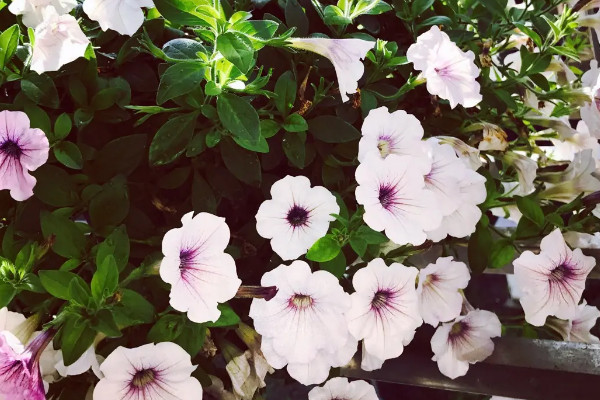 矮牵牛是多年生植物,经常作一、二年生栽培,其株高15-80厘米,叶片呈椭圆或卵圆形,花冠喇叭状,花朵颜色丰富,常见的有白色、粉色、紫色、红色等,花期在每年四月至霜降。