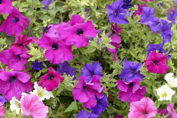矮牵牛不耐涝,多雨季节要用铲子松土,排出土壤中积攒的水分,而且矮牵牛进入花期后,需肥量大,可以每隔半月施加一次氮肥和钾肥,促进植株生长,而且氮肥含量要有所减少,避免矮牵牛徒长。