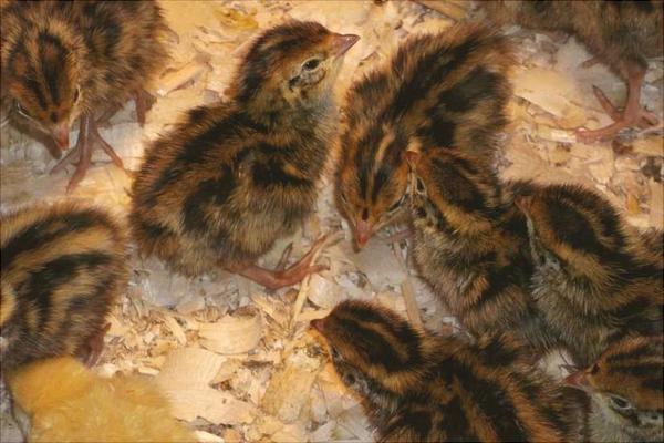 3.3周龄雏鹌鹑 雏鹌鹑初羽换后,只要羽毛生长正常,凡栗褐羽型的雏鹌鹑,可根据羽毛的形状与色斑鉴别之。雄鹌鹑开始长出红褐色胸羽,其上偶有黑点。但少数雌鹌鹑胸羽类似雄鹌鹑、加之其脸部与下颌部尚未换羽,往往导致鉴别错误。