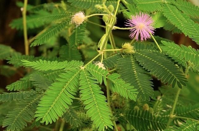 有刺含羞草的主要特征就是雄蕊与花瓣同数为花瓣数的2倍,全株皆可入药,也有不错的安神作用。有刺害羞草的颈部长出来一些白色小绒毛,枝叶分叉处有小刺,微硬。