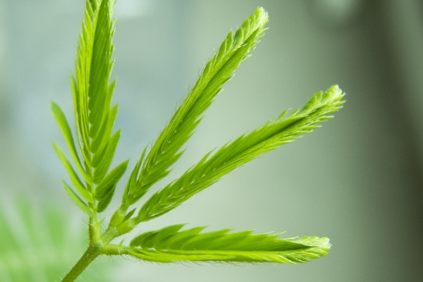 含羞草刚刚长出来时,圆形叶片小,而且没有植株的明显特征,等含羞草长出第三片真叶时,特征才会比较明显,此外植株发芽一个月后,就能生长出浓密的叶片。