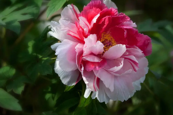 牡丹花的品种繁多,根据花色可分为复色类、绿色类、黄色类、墨紫色类、粉色类、白色类、粉蓝色类以及紫红色类,其中复色中最典型的品种就是二乔三变赛玉和娇容三变。