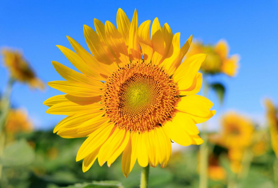 向日葵通常象征着阳光、快乐、忠诚和坚持不懈的精神。它们的名字源自它们天然倾向于向太阳的方向生长。因此,向日葵也可以代表对光明和希望的追求,以及积极、乐观和热情的生活态度。