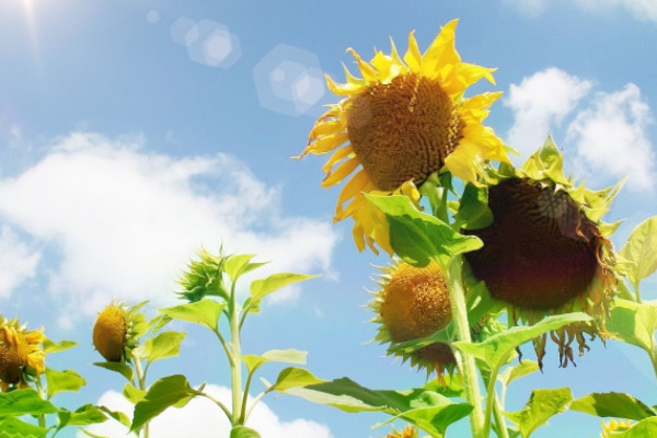 修剪花枝:将剪刀与向日葵花枝呈45度斜角斜剪一刀,并摘除底部叶片,减少水养分的消耗。 浸泡处理:把处理好的花枝放入装有水的容器内,只需要花杆接触水即可,切忌花苞碰水。 注意事项:向日葵的醒花时间以3-4小时为宜。