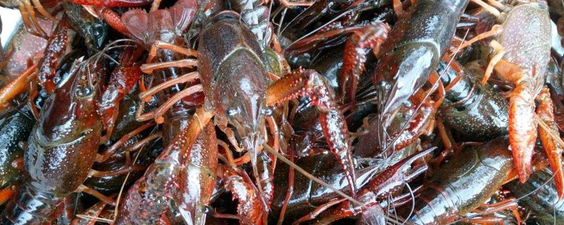 小龙虾:小龙虾又名克氏原螯虾,呈圆筒状,头胸甲侧扁,甲壳具明显颗粒,背部与龙虾钳为暗红色或黑色,两侧为粉红色,带有橘黄色或白色斑点,腹部背面有楔形条纹。头部有三对触须,胸部具五对步足,尾部具五片强大酌尾扇,往内弯曲。