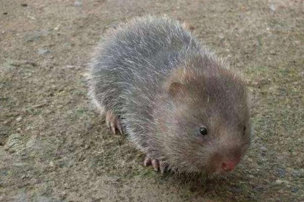 成体身体背部毛色为棕灰色并长有百尖针毛,吻部及两侧的毛色略淡,身体的腹部毛被较为稀疏,色白而暗其间也杂有闪亮的细毛,透过毛被可看到粉红色的皮肤,个别个体的足背与尾部的毛色均为灰棕褐色。