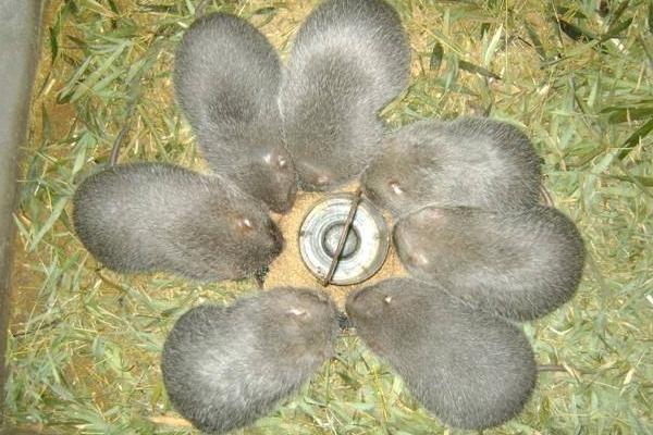 3、由于竹鼠没有饮水的习惯,水分摄取来源主要是饲料,所以为了保证竹鼠所需水分的摄取,需要每天早晚各一次进行投喂饲料。