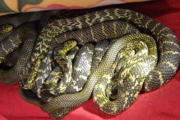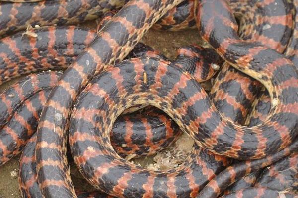 3、后毒牙蛇类:赤练蛇、虎斑游蛇、双斑锦蛇、玉斑锦蛇、白点锦蛇等。