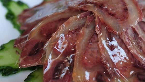 将驴***与驴大骨、淮山药、党参、枸杞、淫羊藿等中药煮汤,2小时烂透后,就可切片上桌。