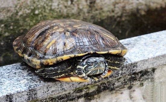 巴西红耳龟性情活泼,比中国产的任何一种淡水龟都活跃、好动,对水声、振动反应灵敏,一旦受惊纷纷潜入水中。
