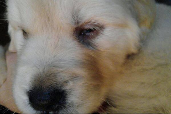 2、如果狗狗的眼睛会经常分泌出分泌物,分泌物会流到周围的毛发上。久而久之毛发会被这个分泌物粘连到一起,还会变成咖啡色(相对于毛发较浅或白色犬),让可爱的狗狗顶着一对黑眼圈。所以我们要及时的给它清理。我们尽肯能的每天给狗狗清理眼部或眼部下的卫生,就不会有以上情况的发生了。