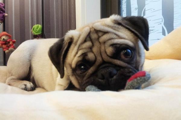 巴哥犬原产于中国,富有魅力而且高雅,18世纪末正式命名为巴哥其词意古语为鬼,狮子鼻或小猴子的意思,容易有睫毛倒插的毛病,头部皱折多,容易眼睑内翻,也容易泪管阻塞,而有两条明显的泪痕。成年身高25~28厘米,体重6~8千克。