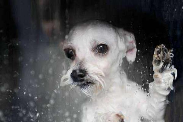 1、在正式给狗狗洗澡的时候我们要掌控好洗澡水的温度,用喷头洗是最好的,水的温度不能太高也不能太低,夏天为36度最佳,冬天的温度为37度最佳,洗时要避免出现毛发或洗发剂进入狗狗的眼睛或耳朵中,冲水要冲的彻底,不要残留洗发剂不然会使狗引发皮肤炎。