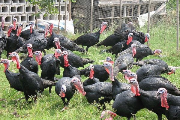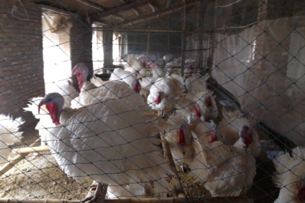 火鸡苗适应能力强,人工饲养农作物秸秆粉碎成粉拌匀,均可作为火鸡饲料,舍饲放牧均可。