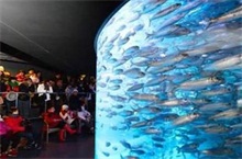 据了解,饲养员主要利用沙丁鱼群对鱼饵的趋向性,和着音乐和灯光投入鱼饵引导鱼群,在蓝白色灯光照耀下,在巨大水槽中四处游动的鱼群酷似雪花飞舞,令人称奇。