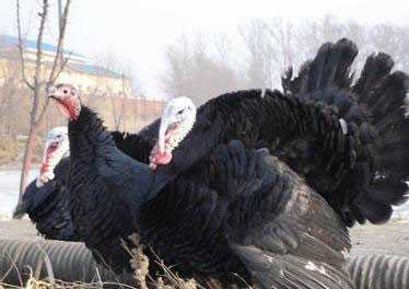 ( 4 )黑火鸡:原产英国诺福克,又名诺福克火鸡。全身羽毛黑色,有绿色光泽。雏火鸡羽毛为黑色,翼部带有浅黄点,有时腹部绒毛也有浅黄点。胫和趾在成年火鸡为浅红色,年幼火鸡为深灰色。啄、眼为深灰色,胸前须毛束为黑色。成年公火鸡体重15 千克,母火鸡8 千克左右。