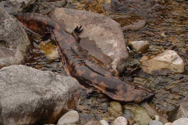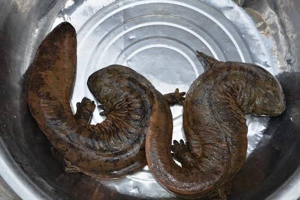 2、大鲵一般都匿居在山溪的石隙间,洞穴位于水面以下。夜间静守在滩口石堆中,一旦发现猎物经过时,便进行突然袭击,因它口中的牙齿又尖又密,猎物进入口内后很难逃掉。