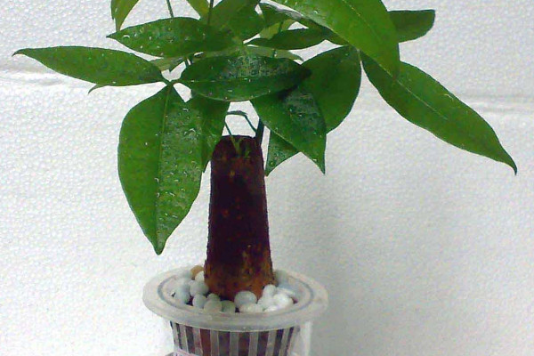 水培发财树可以吸收的营养全部来源于水中,如果水中的养分不足,就会导致植株生长不良而黄叶,因此每次为发财树换水时,要向水中滴入三到四滴营养液,让植株吸收均衡的营养,健康的生长。