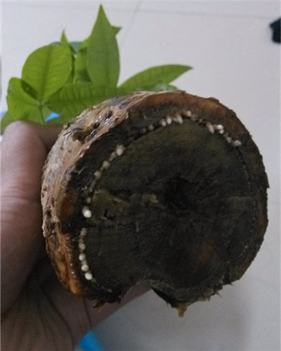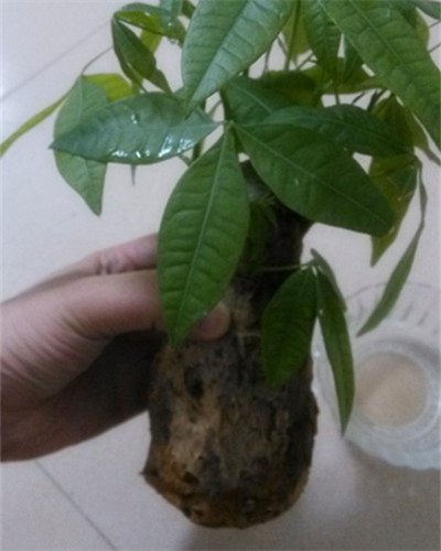 花友情况:在路边买了一棵便宜的发财树,本来一直长得好好的。3月份出差就把发财树浇了水放到阳台,结果期间下了一个星期的雨。后来拿回来屋子里就没怎么理它,也比较少浇水。4月份中旬感觉叶子有点变黄以为是没营养了,想开土弄点肥料进去。结果无意一提整课树都弄出来,根和地下的茎都全烂了。