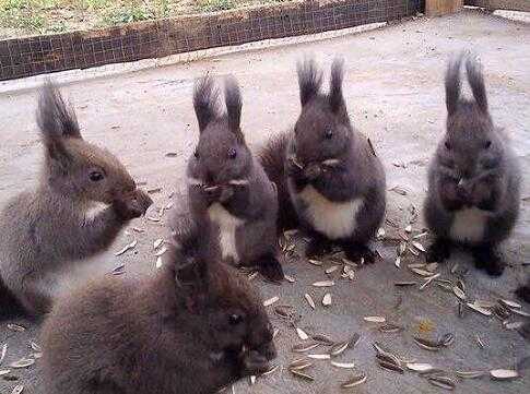 四、饲养的房舍要干燥,冬暖夏凉,生长繁殖的适宜温度为15℃左右,由于松鼠不能耐高温,35℃的温度时,即能中暑死亡,所以夏季高温季节应注意笼舍的通风、蔽阴。