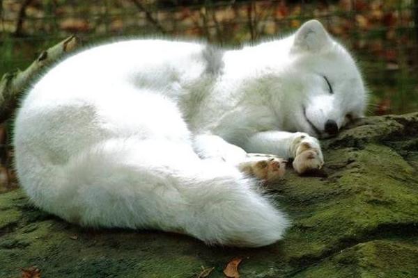 1、白狐:白狐在冬天体毛是白色,仅鼻尖为黑色。夏天毛为灰黑色,腹面颜色较浅。