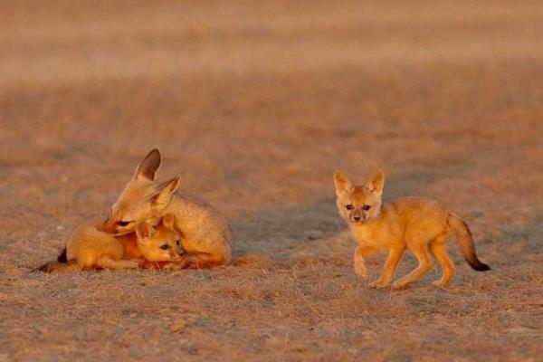 3、南非狐:南非狐体毛为黄褐色,耳、腿和脸的一部分为黑色。