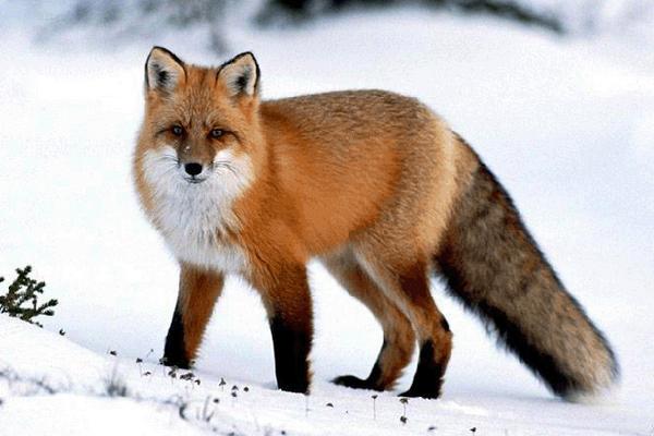 6、赤狐:赤狐背面棕灰或棕红色,腹部白色或黄白色,尾尖白色,耳背面黑色或黑褐色。