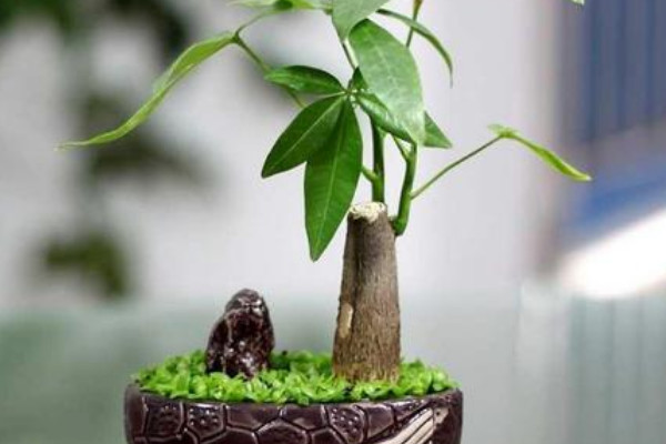 给盆栽发财树浇水时,可以在塑料瓶中灌入水分后,沿着盆边进行浇灌,直到盆底有水分流出,则表示土壤完全浇透,而空气干燥时,要将清水灌入喷壶,然后喷洒在发财树的枝叶上,营造湿润的生长环境。