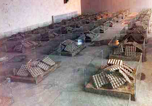 蝎子蜕皮的原则就是要安全,想安全蜕皮,就要做到隐蔽,只有隐蔽了,蝎子在蜕皮的时候,才不被同类或者天敌发现吃掉。所以给要蜕皮的蝎子住什么样的窝很重要。蝎窝也就是垛体,垛体的建造方法是关键所在。我对要蜕皮的蝎子都是给它们住用蛋托堆砌的窝,但不同年龄的蝎子,蝎窝有不同的堆砌方法,左边的蛋托是正面朝上,右边的蛋托是背面朝上,即我们将左边这张蛋托的面叫做正面,右边这张蛋托的面叫做背面,这两个面要记好,然后将右边的蛋托移到左边的蛋托上叠加起来,这样就变成右边的蛋托的正面对着左边蛋托的正面