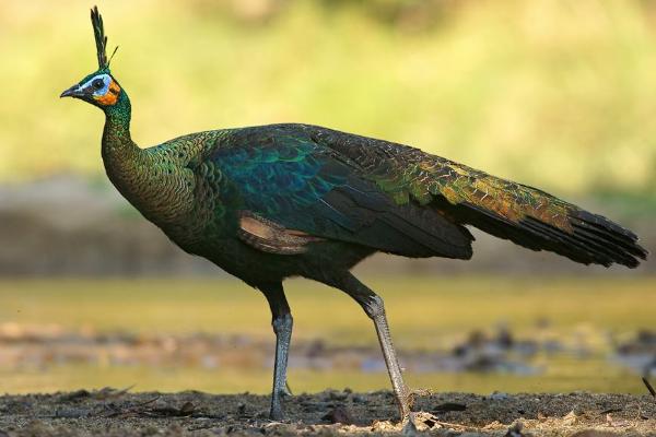 2、绿孔雀:绿孔雀分布于东南亚,我国仅见于云南西部和南部,野生数量稀少,为中国国家一级保护动物,喜欢在疏林草地、河岸或地边丛林以及林间草地和林中空旷的开阔地带活动。