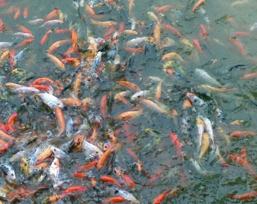 一般在鱼苗下塘前7天先施基肥,每667m2施畜粪或人类尿300千克,繁殖天然饵料生物,供鱼苗摄食。鱼苗入池后,根据水质肥度、天气、水温和鱼苗生长情况决定追肥量,一般每天施肥1次,每次每667m2施肥100千克,加水化浆后,全池均匀泼洒。鱼苗入池4天后,如清晨鱼苗浮头,日出后恢复正常,说明池水肥度适中;若在晴天上午8时后仍浮头,则说明水质过肥,应停止或减少追肥量;若不浮头,且水色清淡应增加追肥量。