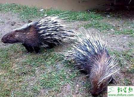 在几个月的考察探索中,谢家平意外发现,饲养豪猪是个不错的选择。豪猪不仅饲养成本底、易管理,而且全身是宝。除肉质鲜美,市场销路好,豪猪的肝、胆、胃均可入药,身上的尖刺还可以做渔具、装饰品、牙签,可谓全身是宝。