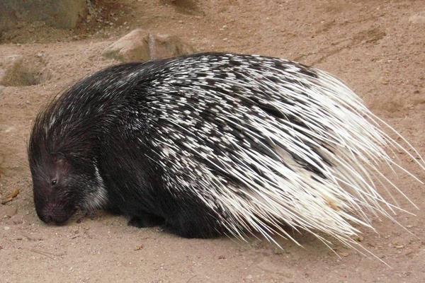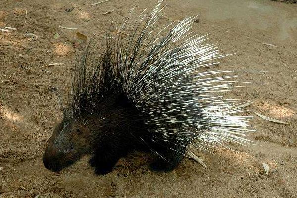 豪猪,又称箭猪,是一类披有尖刺的啮齿目,可以用来防御掠食者。身体肥壮,自肩部以后直达尾部密布长刺,刺的颜色黑白相间,粗细不等。豪猪白天躲在穴中睡觉,晚间出来找食,喜食花生、番薯等农作物。受惊时,尾部的刺立即竖起,刷刷作响以警告敌人。