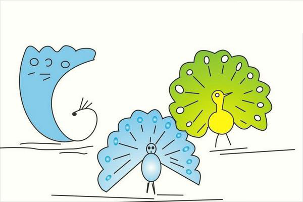 以上图片中的孔雀是不是很美丽啊,有可爱版的,有写实版的,赶快拿起你手中的笔练习一下吧!