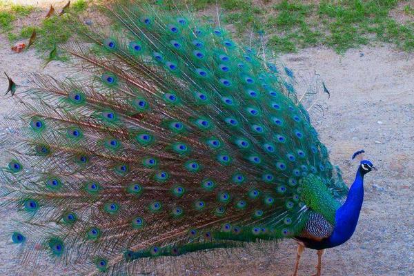 蓝孔雀的饲料配方是:混合饲料由玉米粉30%、高粱粉10%、豆饼20%、麸皮10%、大麦渣22%、鱼粉4.5%、骨粉3%、盐0.5%组成。补充饲料有骨粉、碳酸钙、贝壳、微量元素及多种维生素。青绿饲料须切碎拌喂,也可单独饲喂。粒料为常备饲料,麻子、苏子等油料作物为冬季的补充饲料。在繁殖期、换羽期或育雏期要适当多喂一些维生素B1、B2和维生素E以及贝壳粉、骨粉等矿物质饲料。