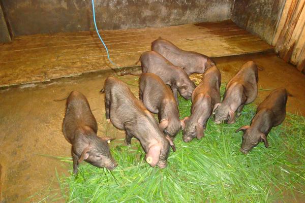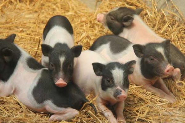 二、哺乳仔猪的管理。饲喂好仔猪是提高成活率和商品猪的关键。小香猪出生后,要固定好母猪的乳头,让仔猪吃好初乳,并加强保温,让其早开食,一般出生4天后就可补喂精饲料。仔猪补料配方一:玉米粉58%、豆粕18%、黄豆粉(炒熟)25%、柠檬酸2%、奶粉4%、磷酸钙1%、磷酸二氢钾1.7%、食盐0.3%和添加剂适量;配方二:玉米粉55%、豆粕35%、柠檬酸2%、奶粉5%、磷酸钙1%、磷酸二氢钾1.7%、食盐0.3%和添加剂适量。仔猪补料可全部吃湿料,每天喂4-6次,晚上加喂1次。在25-44天,仔猪可断奶,断奶后仔猪分群饲养。1月龄后及时注射猪瘟、猪丹毒和猪肺疫疫苗。
