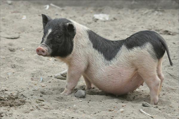 小香猪是特有的迷你猪品种,该品种的猪猪发育快,成年早。虽然体型不大但是一口猪牙已经发育完全,与成年猪相同。