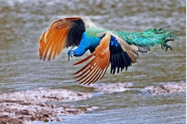 蓝孔雀是印度的国鸟。也是伊朗两种国鸟之一。主要生活在丘陵的森林中,干燥的半沙漠化草地、灌木和落叶林地区,尤其在水域附近。