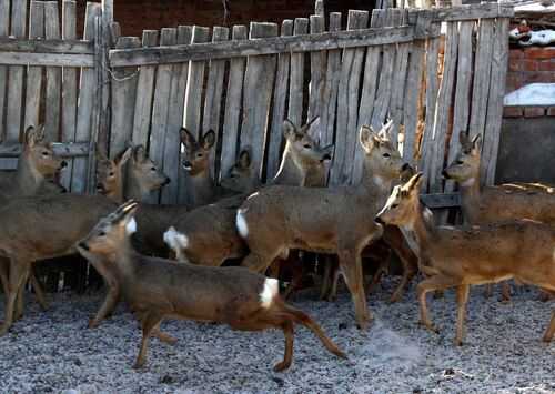 2008年秋天,周福鸿投资40万元,从内蒙古赤峰地区买回大批种狍,经前辈的指导,在家乡办起了养狍场。燕山脚下的围场县,山峦起伏,林木茂盛,山间的草地草茂水肥。到了冬季,就把户外养殖场的狍子转到庭院里,一个30平方米的圈舍能养上二十几只。除喂干树叶和苜蓿草外,再加点麦麸、玉米面或谷糠之类的精饲料就行了。由于狍子食量很小,平均一天每只也就6毛钱左右。