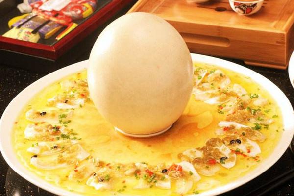 吃鸵鸟蛋也和吃鸡蛋一样,烹蛋法可以层出不穷。曾在非洲吃过鸵鸟蛋的洋人尚且晓得又煎又炒,若是落在华人的手中,烹鸵鸟蛋的花样肯定更多。