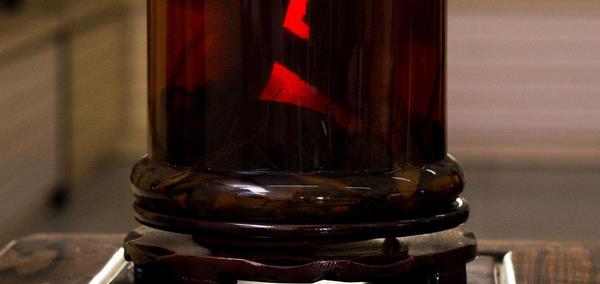 2、选择盛酒器,现在市场中有现成的,下面带有开关的那种,适合后期放酒。尽量选择使用玻璃的或者会瓷的,这样的酒器不会破坏酒的口感,并且可以长期保存。选择一些纯粮酿造的散酒,现在的包装白酒已经经过了勾兑,适合泡酒。度数保持在58度左右,这样既不失去酒的口感,又不破坏,鹿鞭的营养以及药用。