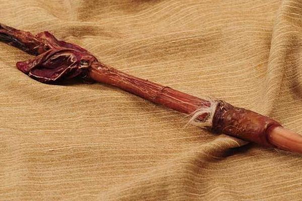 2、马鹿鞭:马鹿鞭粗而长,呈两侧稍扁的长圆柱形,长45~60厘米,横径2~2.5厘米。表面灰黄色至灰黄棕色,呈半透明状,未洗净血污的呈褐色或紫褐色,不呈半透明状。***头顶部钝习,近顶部下端膨大,棕红色,陈久者呈黑色。睾丸2枚,椭圆形,肉质,坚实。总重100~150克。