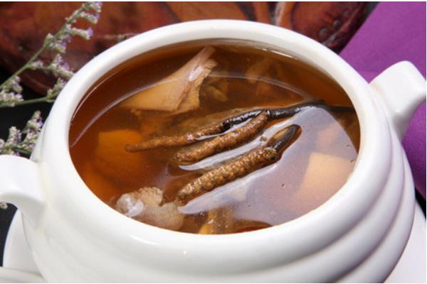 原料:穿山甲肉、虫草、黄芪、栓圆肉、瘦猪肉、鸡清汤、素油、火腿、精盐、味精、胡椒粉、姜汁酒、料酒、葱、姜。