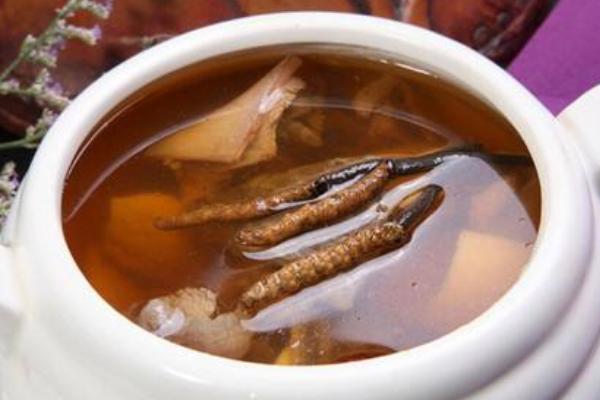 材料;穿山甲肉、虫草、黄芪、栓圆肉、瘦猪肉、火腿料酒、精盐、味精、胡椒粉、姜汁酒、葱、姜、鸡清汤、素油。