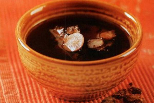 3、将猪肉、火腿、穿山甲肉、桂圆内、黄芪、虫草按顺序放入炖盅内,放入葱、姜,加入精盐、料酒、清水加盖,炖至穿山甲肉软烂,拣去葱姜、撇去浮油。加入鸡汤,再用中火炖30分钟取出,加入味精、胡椒粉即成。