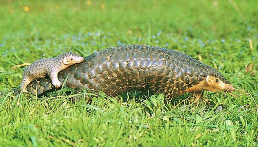 据了解,穿山甲又名鲮鲤、山甲珠,属古态的哺乳动物,鳞甲目穿山甲科。体长一般为40~55厘米,尾扁而粗,体较短。体和尾被有覆瓦状的角质鳞;头小、吻尖、口、耳和眼都小,无齿,舌细长,能从口孔伸出舐取食物。四肢短,爪强壮锐利,用以搔地觅食或掘洞穴居。穿山甲性情温驯,喜食蚂蚁、白蚁及其他昆虫的幼虫等,胆怯、怕惊,昼伏夜出觅食,遇敌时则蜷缩成球状。野生主要分布于我国长江以南地区以及越南、缅甸、尼泊尔等地,栖居在丘陵山地的树林、灌丛、草莽等处。穿山甲是不折不扣的无齿之徒,由于没有牙齿,吃东西全靠长长的舌头,会游泳、擅爬树。每年1胎,每胎1~2仔。穿山甲目前是国家二级保护动物,正在修订的《野生动物保护法》会将它列入国家一级保护动物。