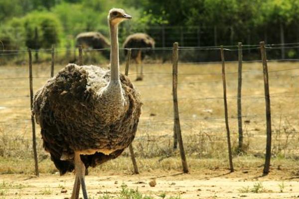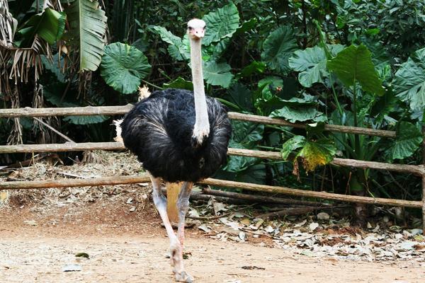 鸵鸟是非洲来的,但它不怕冷,好养,比如东北温度那么低,养起来都没问题。鸵鸟耐粗饲动物,养殖起来比较起来。鸵鸟蛋有个特性,就是特别坚硬,一两百斤的东西压在上面都不会碎,脑子小,蠢。大家抓它的时候,可以用钩子套住它的脖子,然后用布蒙住鸵鸟双眼,只要看不见光,这家伙就老实了。