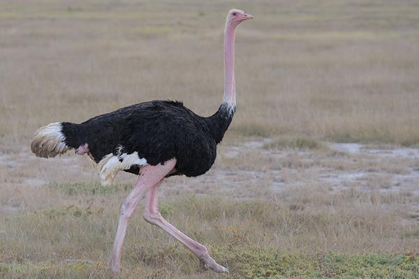 小鸵鸟一出生就有两斤多重,大鸵鸟就更不用说了,一头成年鸵鸟有的重达二百二十公斤。鸵鸟是现在世界上现存体型最大的鸟,它们非常善于奔跑,一步可以跨越八米,最高时速可以达到每小时八十公里。有的鸵鸟高度可达到两米六多个头非常大。如果公鸵鸟脸发红,脚也发红,这就说明它发情了,而且它们发情时会有跳舞的一些表现,每年的发情期为二月份到10月份,六七月份是产蛋的最高峰,每只母鸵鸟每隔一两天就会产下一枚蛋。一枚鸵鸟蛋一般来讲,重达4斤。几年前一枚鸵鸟蛋就能卖到200多块钱,利润十分丰厚。一只鸵鸟一年可产下50、60枚蛋。这生意有的做吧。