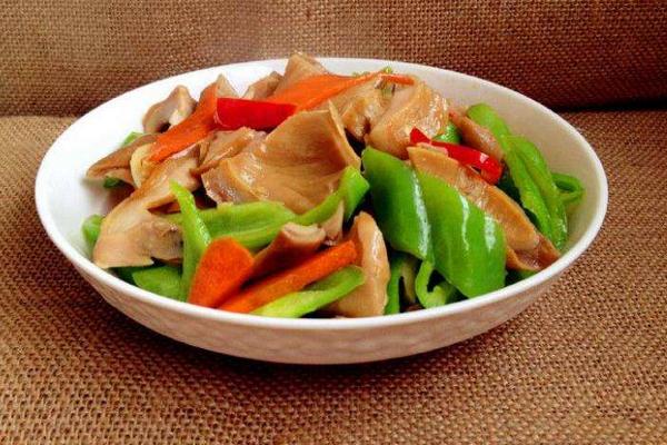 用料:猪肚适量、胡萝卜1根、洋葱半个、尖椒2个、色拉油适量、食盐4克、酱油5克、水淀粉少许、胡椒粉适量。